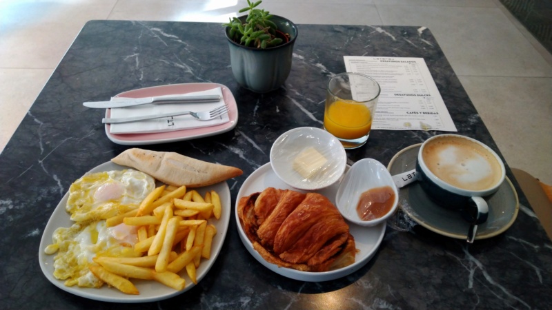 Empezando el día con buen pie Desayuno en Lateral, huevos fritos con patatas, croissant mermelada y café con leche, un lugar que recomiendo por la atención, y el agradable espacio que se crea en su restaurante de avenida Cesaraugusto, en el centro de Zaragoza. |